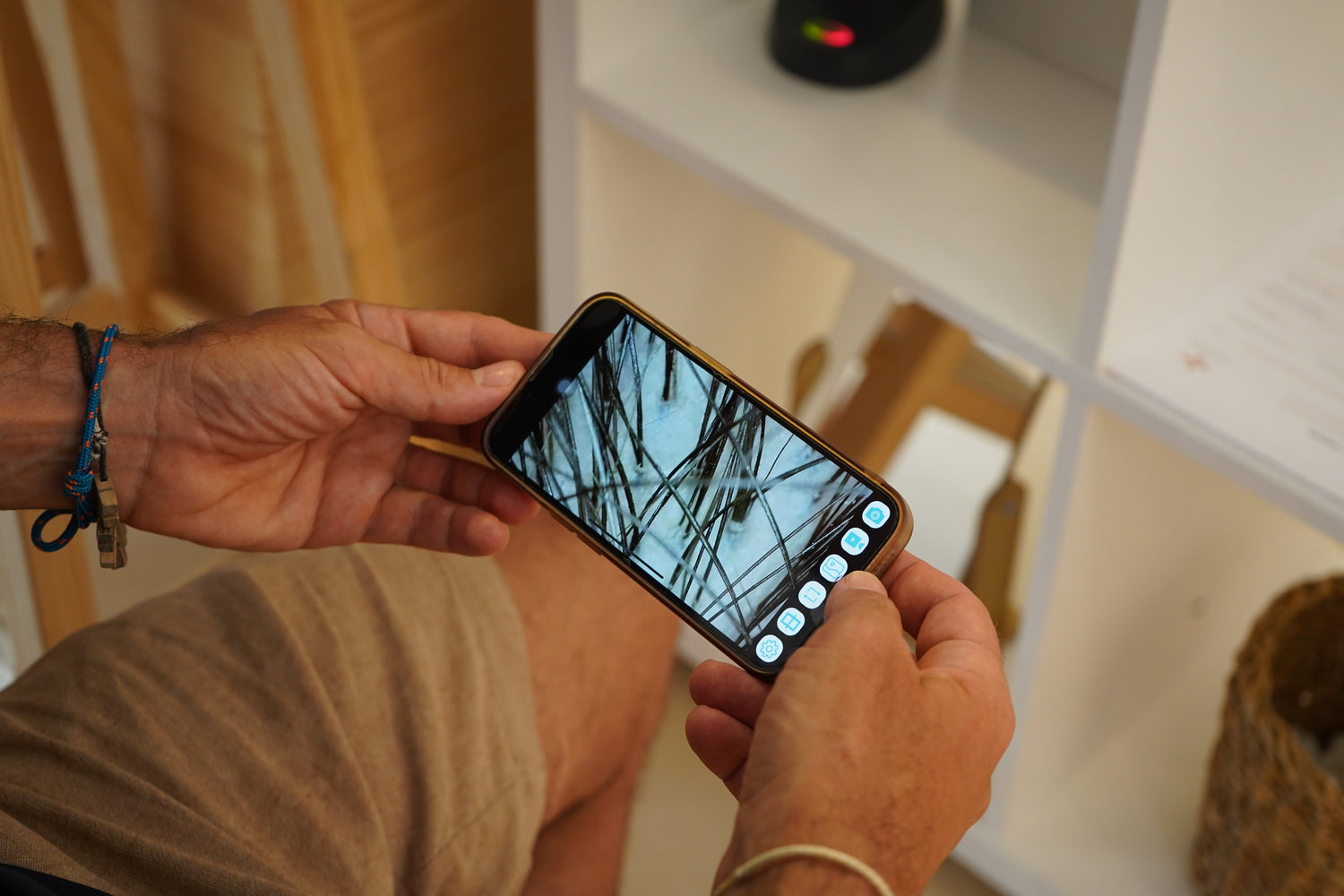 Comenzamos con una entrevista personalizada, donde valoramos tus rutinas, alimentación, estrés, medicación y otros factores que influyen directamente en la salud capilar.